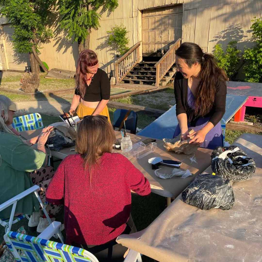 During her month-long residency, Linh Le hosted a public performance ritual that incorporated collaborations with Austin artists Sir Beau Elliot and Andie Flores, collaborated on a “Becoming Species” riso-graph print with artist Laura M. Cañas P., led multiple mask making workshops as well as guided meditations exploring variations of screams and flying as part of Fusebox Festival, and actively volunteered and organized with the Austin Bat Refuge.